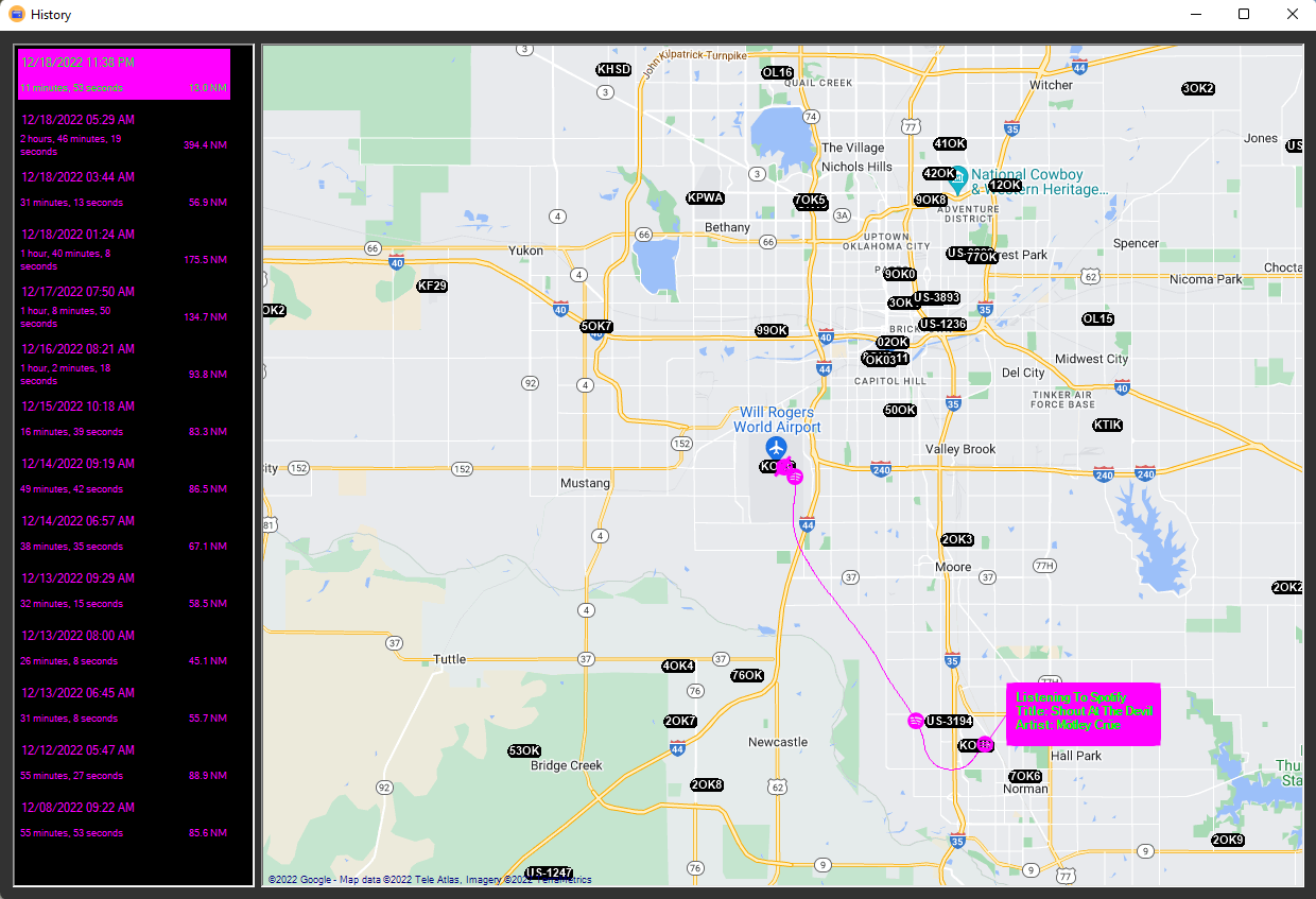 - View your flight histories and what you were listening to.