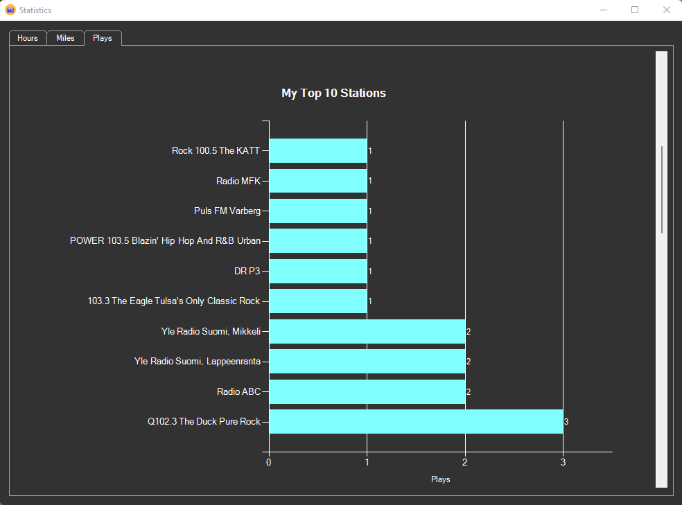 - Check out your top played songs and stations as well as the global top ten songs and stations.