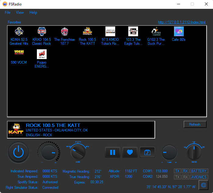 - Display and listen to "local" radio stations as you fly around the world.