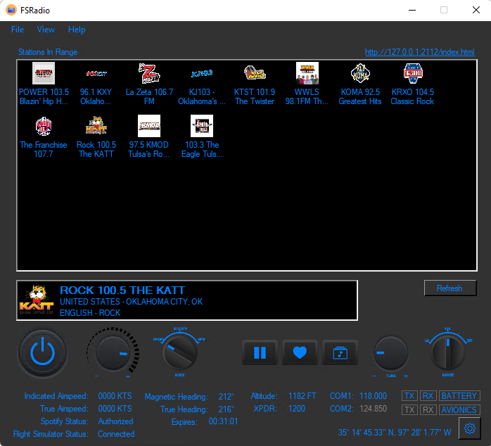- Display and listen to "local" radio stations as you fly around the world.